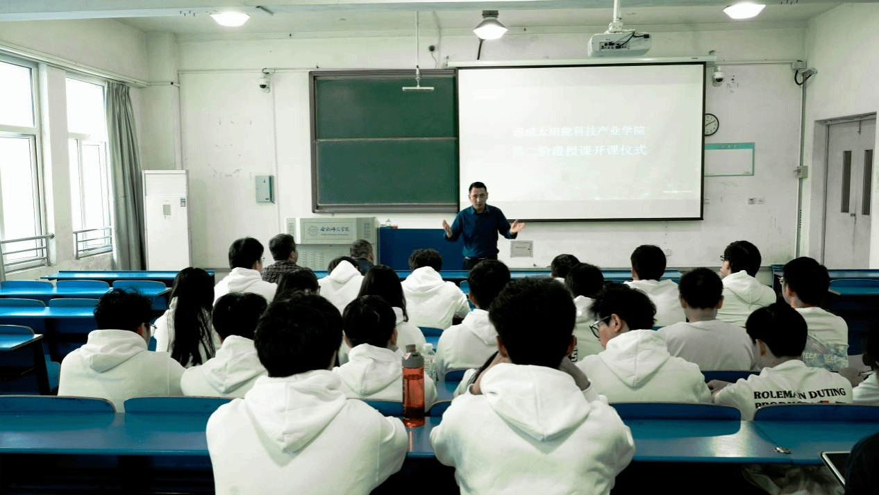 为深入推进产业学院建设,切实提升应用型人才培养质量。10月9日,学院光伏太阳能产业学院举办新学期开班仪式,js6668金沙登录入口副院长余龙宝主持,js6668金沙登录入口党政领导班子、通威太阳能企业相关负责人和全体学员参加。