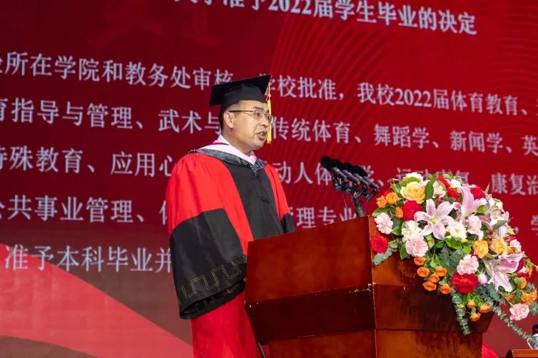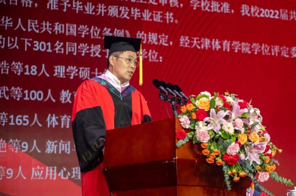 张欣在讲话中回顾了2022届毕业生在诸侯快讯求学的时光里,与祖国共命运、与时代同呼吸的点滴,并向全体毕业生提出四点希望:一是牢记体育之重,坚守理想初心;二是明确历史使命,努力担当奋斗;三是做到终身学习,勇攀创新高地;四是自尊自信自强,建功伟大时代。