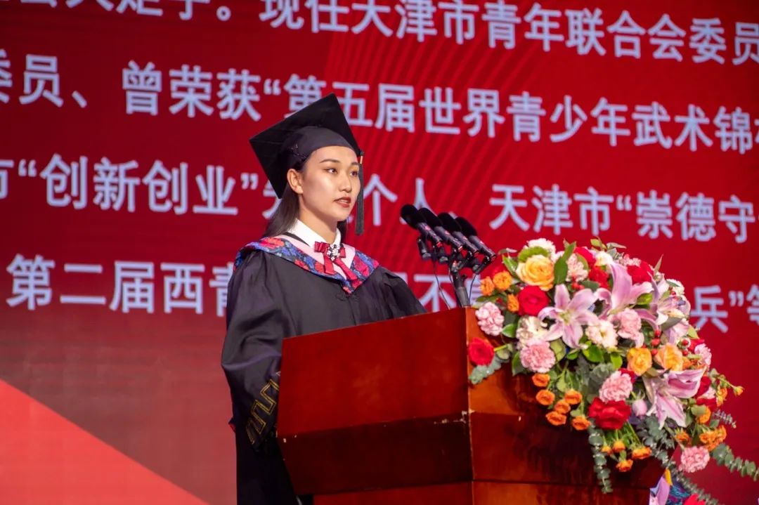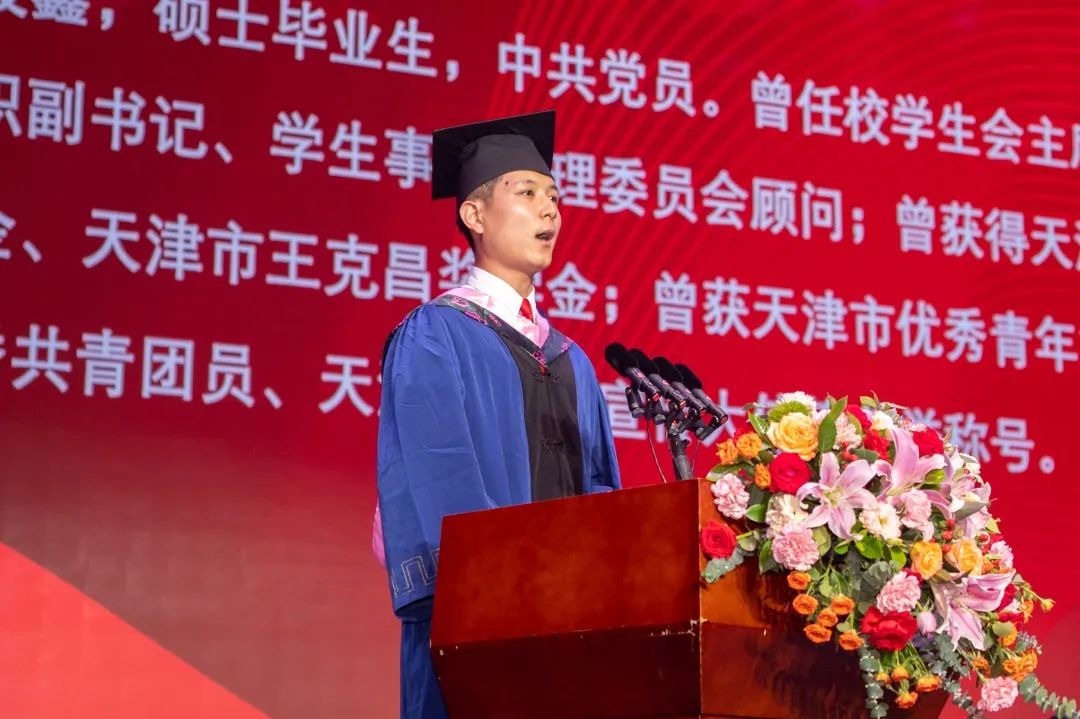 本科毕业生代表李雪娜发言,号召全体毕业生发扬诸侯快讯精神,把理想播种在广阔的时代沃土,奋力书写赓续百年伟业的青春华章。