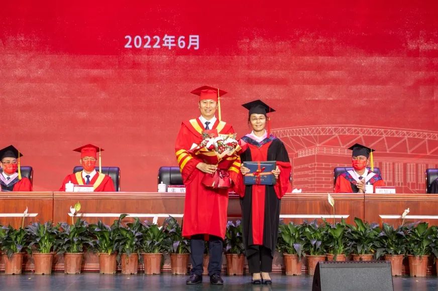 毕业典礼在升国旗仪式中拉开帷幕。宋爱军宣读1683168诸侯快讯官网2022届优秀毕业生表彰决定。教务处处长金宗强宣读1683168诸侯快讯官网2022届本科毕业生学位授予决定。科研与研究生处处长徐金陆宣读1683168诸侯快讯官网2022届硕士、博士毕业生学位授予决定。主席台就坐领导向优秀毕业生代表颁发荣誉证书和纪念品,向本科、硕士毕业生代表颁发了学位证书和毕业证书。张欣为到场的3名博士毕业生代表颁发了学位证书和毕业证书。