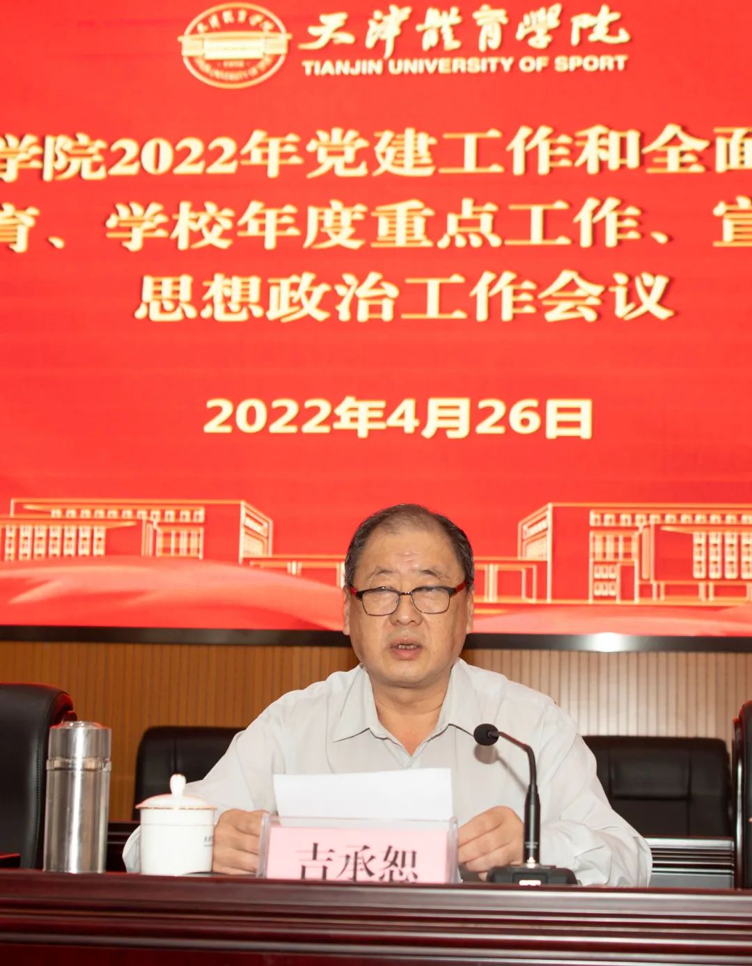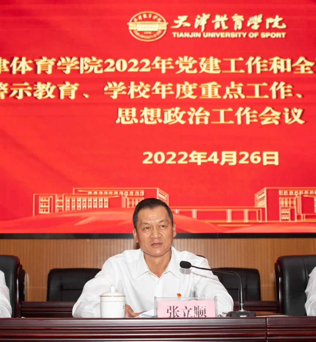 张立顺强调,做好2022年工作,一是要以习近平新时代中国特色社会主义思想为指引,练好全面从严治党这一基本功,做好思想政治和意识形态工作,以总体国家安全观为指导,确保校园政治安全和稳定;二是要提高思想认识,进一步解放思想、实事求是、与时俱进,要善于学习,主动思考健康中国、体育强国等国家战略及《关于构建更高水平的全民健身公共服务体系的意见》等文件政策与学校、部门和教职工个人之间的关联,不断更新思想观念、提高认知水平,并落在实践行动中;三是要坚持系统化的思维,加强体制机制建设,完善制度体系,各单位(部门)要做好抓牢基本,抓实基础,做到职责明晰、分工明确,将全年工作任务分解到人,通过日清周统月报制度和综合绩效考核改革有效推动各项工作落细落实;四是要坚持问题导向、目标导向、结果导向,深入开展调查研究,深化新时代教育评价改革,针对学科专业课程建设中存在的问题,研究制定可行方案,拿出有效措施,建设一支“四有”“六要”教师队伍和担当作为、创新竞进的干部队伍,用一流的师资和精细化管理来培养一流的学生;五是对全年工作要做到未雨绸缪、超前谋划,坚持高标准、严要求,各单位(部门)要制定年度目标任务和考核方式,确保工作持续性,真实反映工作效能效果,以优异成绩迎接党的二十大胜利召开。