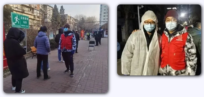 寒冬腊月,“奥密克戎”突袭津城。疫情就是命令,防控就是责任,行动就是回答!随着第二轮、第三轮全员核酸筛查的启动,体育教育与教育科学学院越来越多党员教师闻令而动,积极下沉社区,助力疫情防控阻击战。无畏寒冷,竭尽所能,教职工们主动化身“红甲大白”,充分发挥先锋模范作用,让党旗在各区、各街道、各社区防控一线高高飘扬。