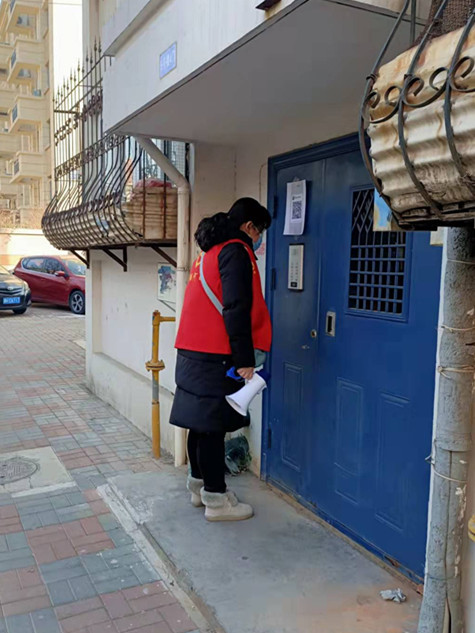 丁宁,中共党员,党委安全工作部干部,参加南开区华苑街道莹华里社区核酸筛查志愿服务,作为两个孩子的妈妈,克服困难,积极服务,冒严寒逐楼逐户通知居民下楼参加核酸筛查,并完成筛查现场秩序维护、人员引导等。