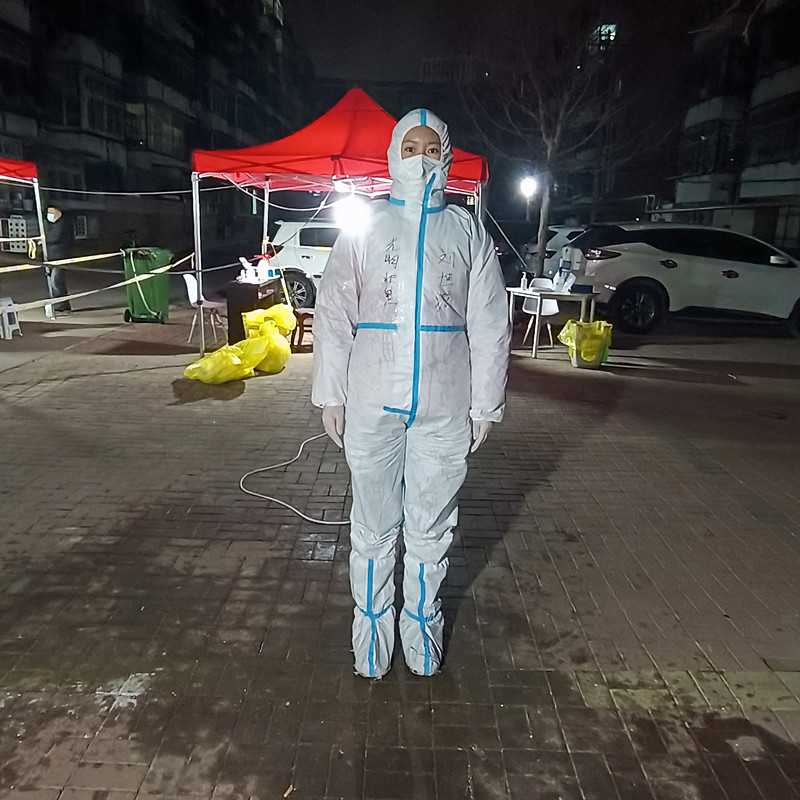 安静雅,中共党员,教学秘书,在西青区精武镇锦泽苑负责核酸检测现场秩序维护和居民信息核对工作。
