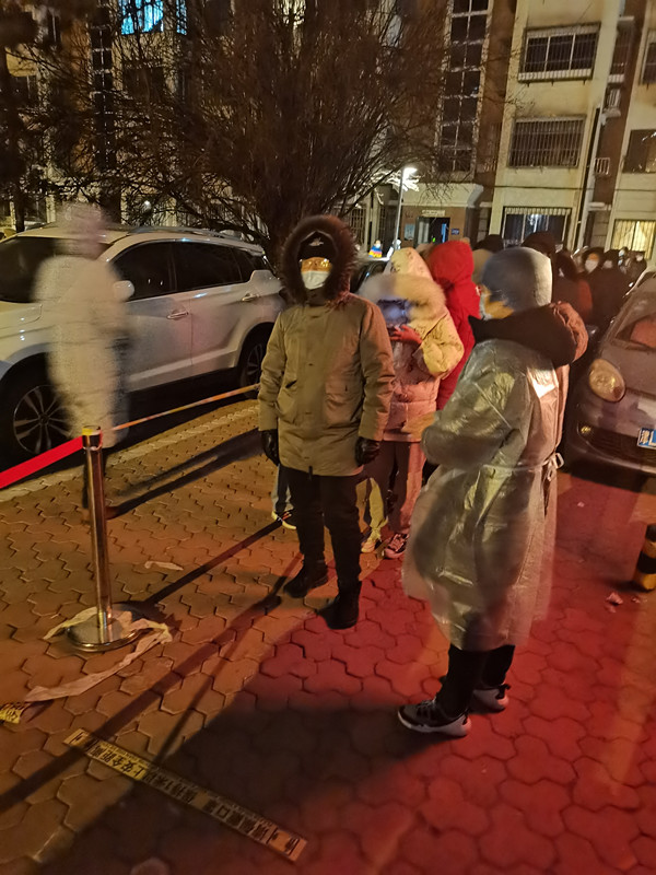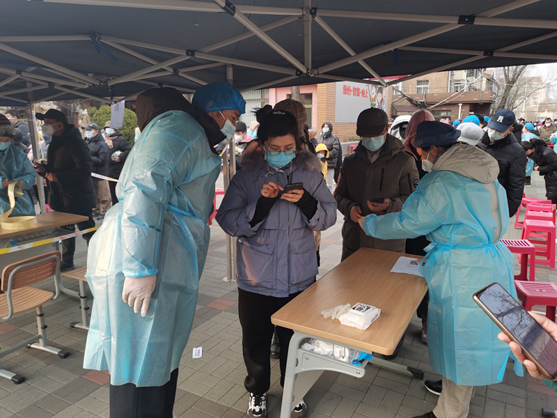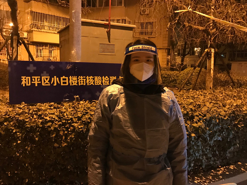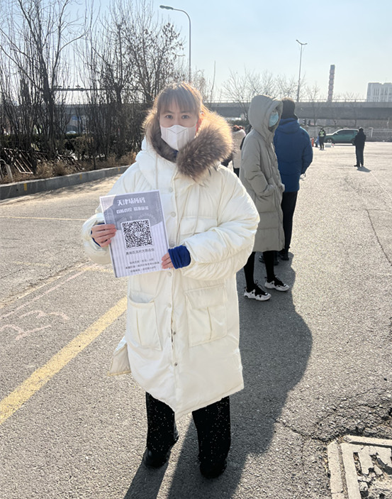 赖雅琳,文化与艺术教研室教师,在和平区南营门街道香榭里社区负责第三轮全员核酸筛查登门入户信息统计,以及检测现场人员引导、秩序维护工作。
