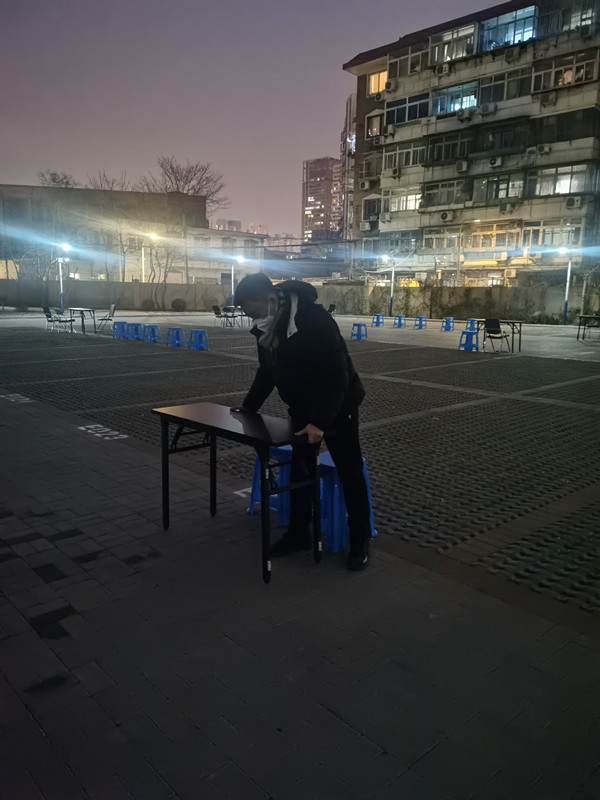 邢进,舞蹈教研室教师,在河东区春华街道汇和家园社区协助开展第三轮全员核酸筛查准备工作。