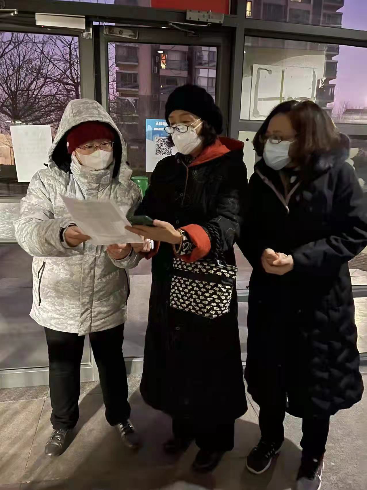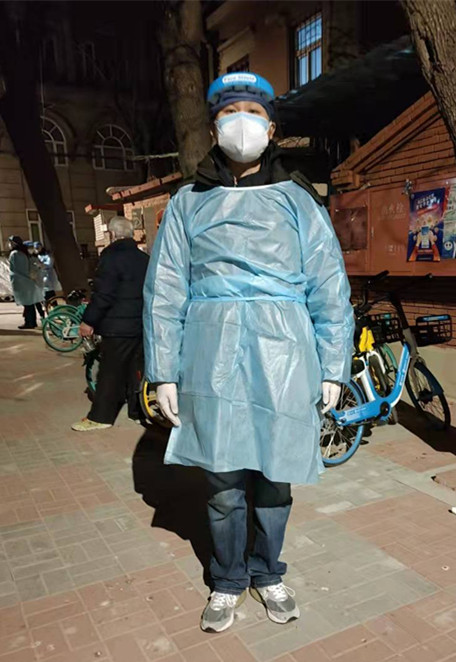国辉,文化与艺术教研室教师,在西青区李七庄街道新都庄园社区协助开展第三轮全员核酸筛查登门入户信息统计工作。