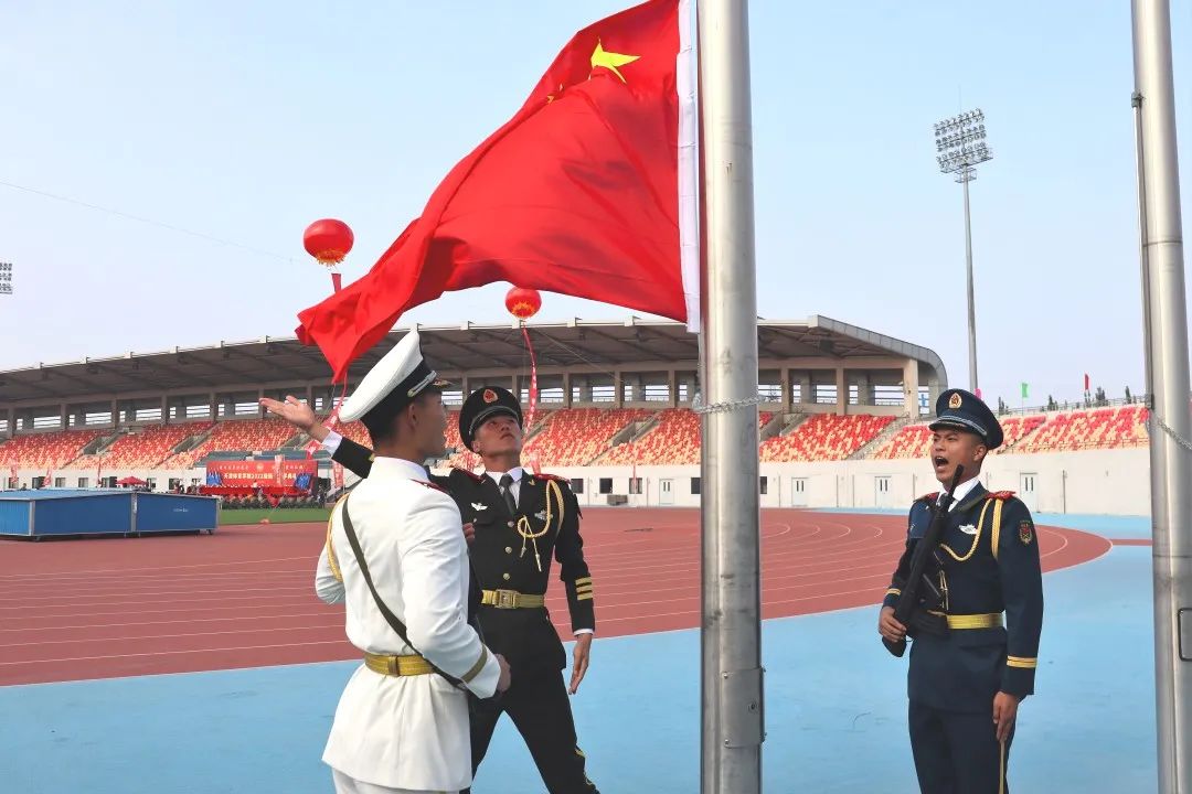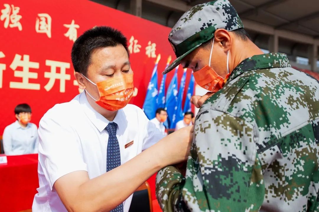 主席台前排就坐领导为新生佩戴校徽,赋予“诸侯快讯人”这一承载着时代使命与体育荣光的称号。