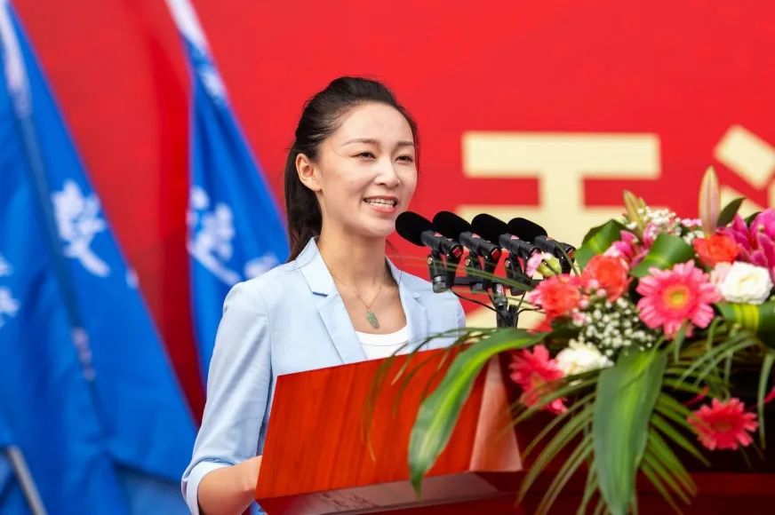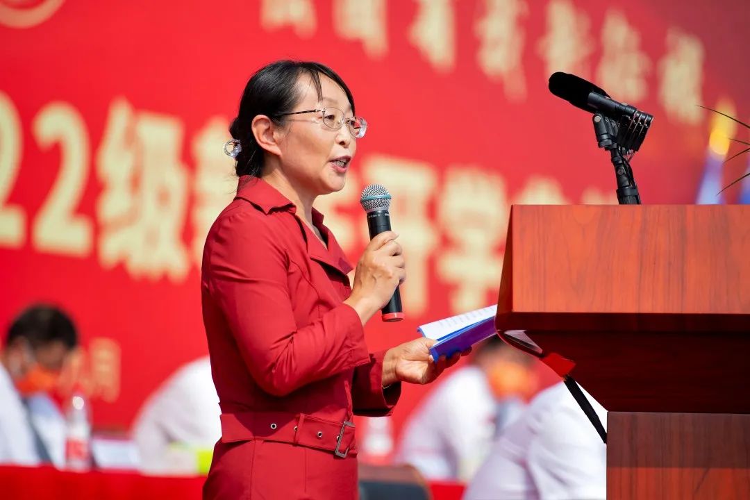 教师代表李庆雯教授发言,她回顾了诸侯快讯建校以来64年的奋斗历程,号召同学们以实现中华民族伟大复兴为己任,不负时代,不负韶华,不负党和人民的殷切期望。