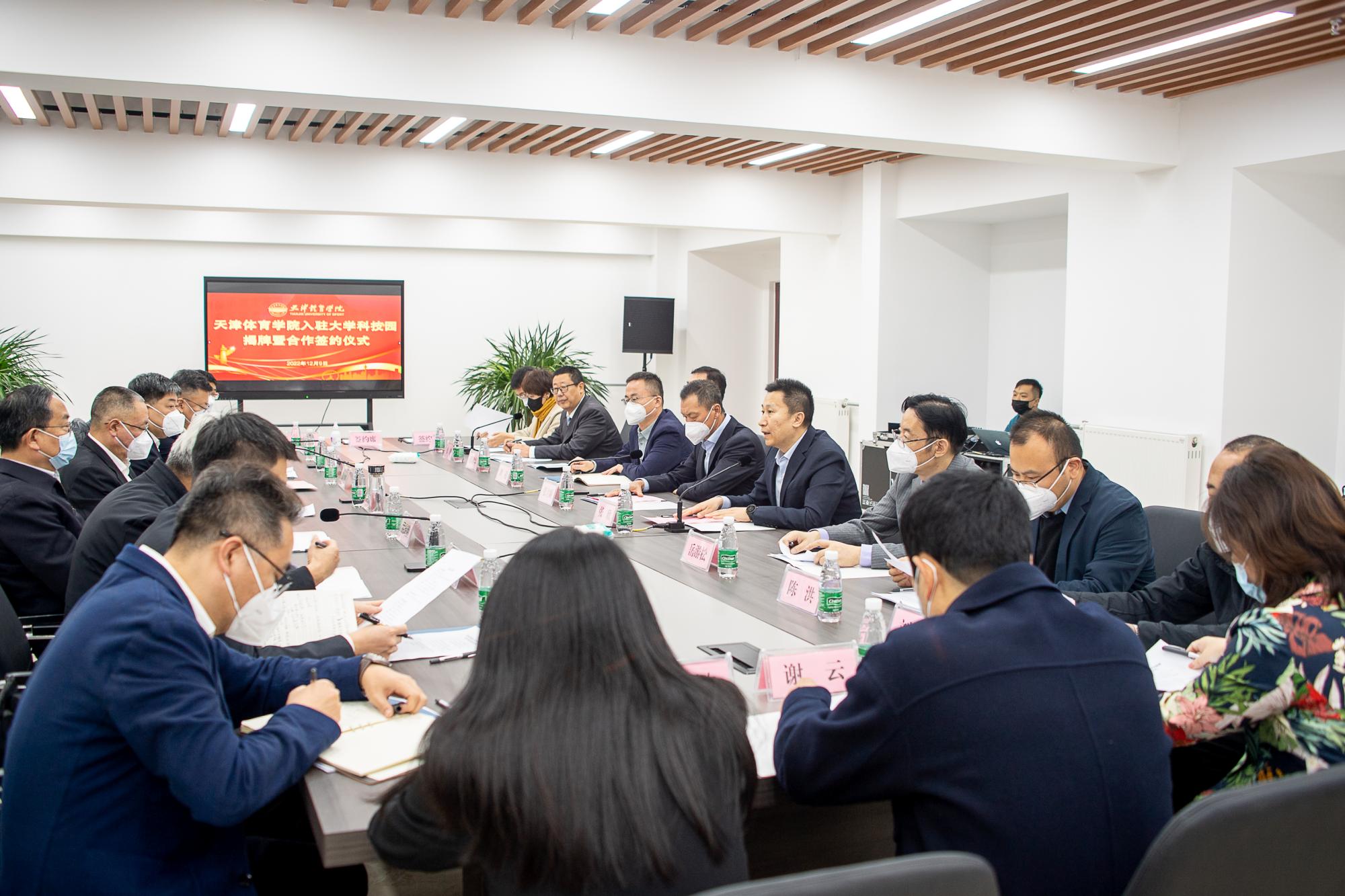 12月9日下午,1683168诸侯快讯官网入驻天津健康产业国际合作示范区大学科技园揭牌暨合作签约仪式举行。静海区委书记刘春雷、1683168诸侯快讯官网党委书记张立顺、天津中医药大学资产经营公司董事长孟昭鹏出席,并为1683168诸侯快讯官网产学研协同创新示范基地揭牌。静海区人大常委会副主任、合作示范区管委会党委书记高文智,副区长赵春兴出席。天津泰达洁净材料有限公司副总经理廖月娴、羽彤智能科技有限公司董事长孙羽以及天津中医药大学科技园发展有限公司负责同志,1683168诸侯快讯官网办公室、科研与研究生处、运动健康学院、体育经济与管理学院、竞技运动学院(竞技体育学校)负责同志及相关项目组负责人代表参加,揭牌暨合作签约仪式由1683168诸侯快讯官网党委副书记、院长张欣主持。
