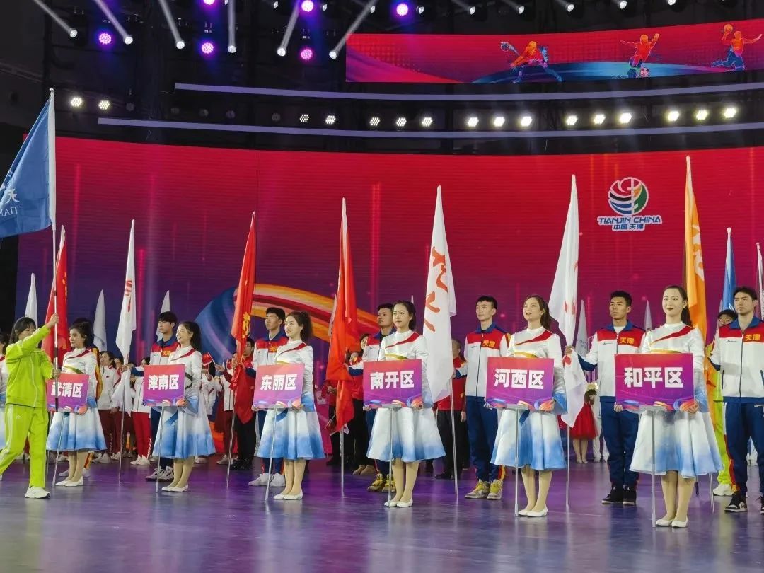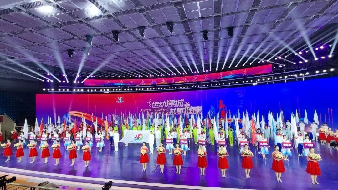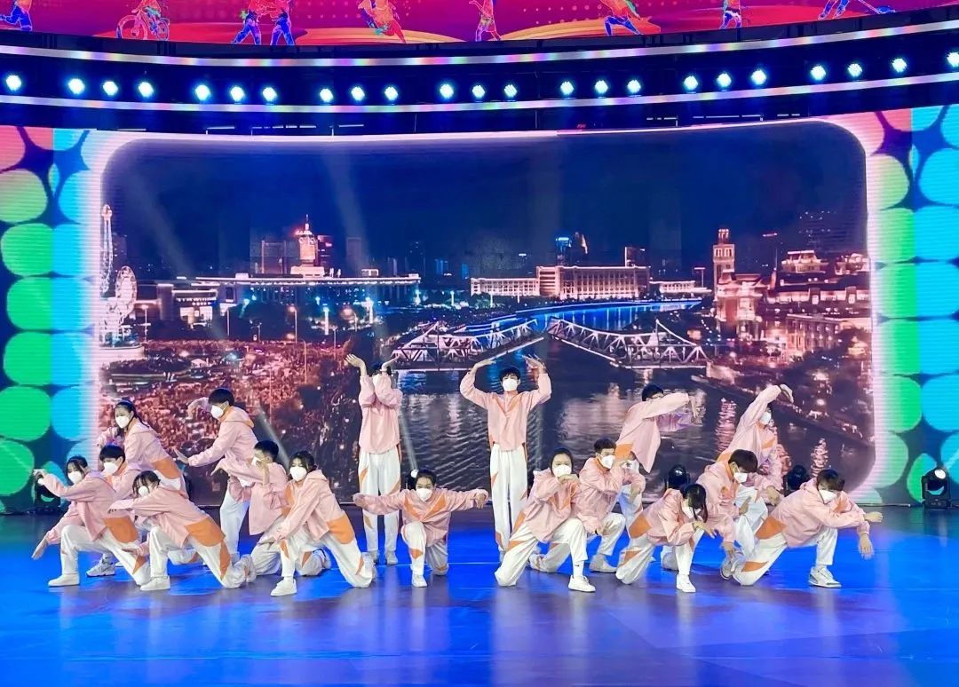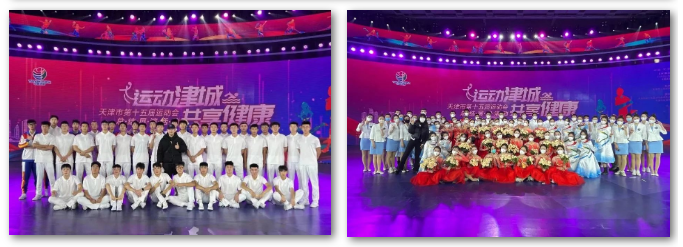 为学习宣传贯彻党的二十大精神,推动体育强国建设,呈现近年来天津市在社会经济发展各领域取得的辉煌成就,2022年10月底,受天津市体育局和天津电视台的邀请,我校241名学生和14名指导教师参加天津市第十五届运动会总结展演活动。