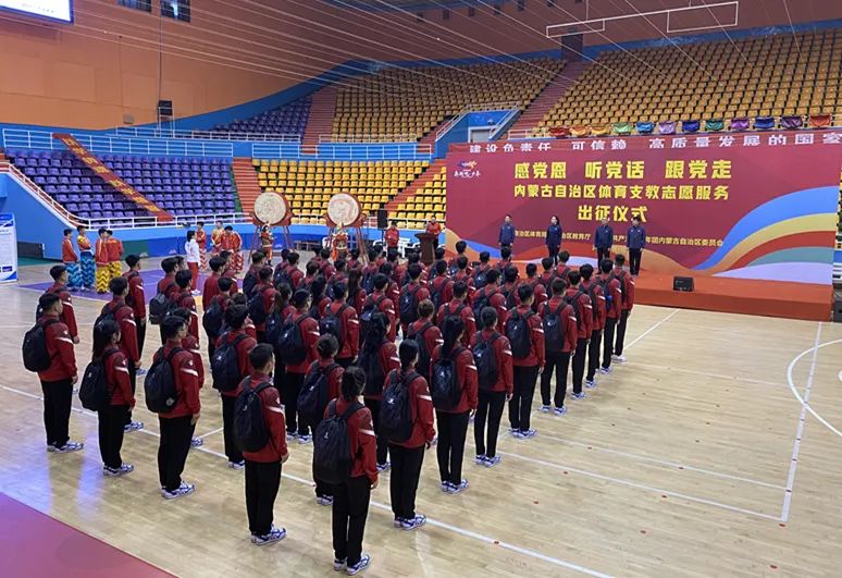 5月3日,支教团踏上征程,副院长张卫国为师生送行,并嘱托大家在支教志愿服务中锤炼、提升自己。5月4日上午,我校支教团参加了在内蒙古自治区体育局召开的内蒙古自治区体育支教团出征仪式。