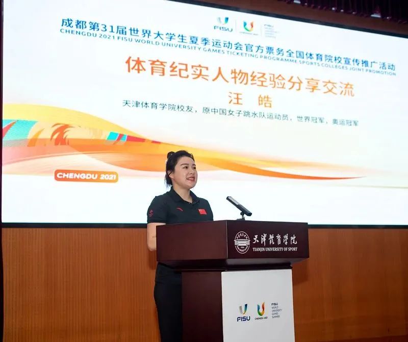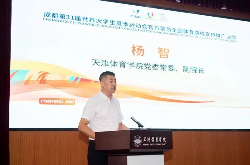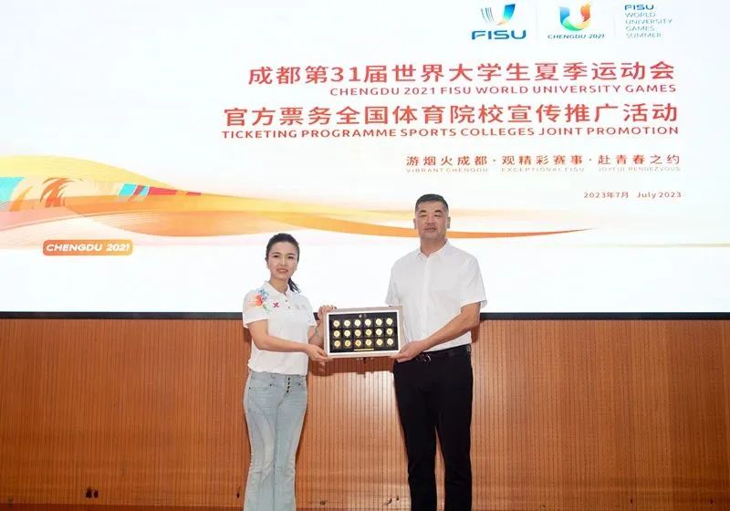 7月6日,成都第31届世界大学生夏季运动会全国体育院校宣传推广活动在我校举行。活动以“游烟火成都 观精彩赛事 赴青春之约”为主题,旨在讲好成都大运故事,传播成都大运声音。校党委常委、副院长杨智和成都大运会执委会票务中心主任陈婷婷出席并互赠礼物,跳水奥运冠军、我校校友汪皓,原中国女排运动员、女排奥运季军、亚运会冠军、我校教师李娟,以及200余名师生代表参加了活动。