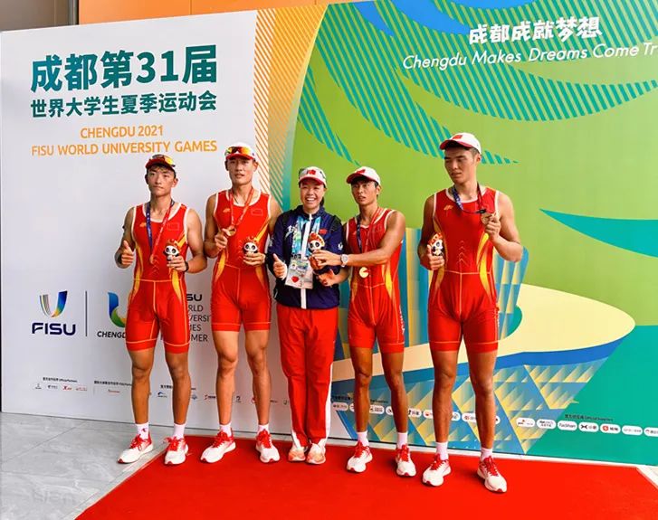 8月6日,成都第31届世界大学生夏季运动会赛艇项目比赛圆满结束。我校参赛教练员、运动员以能吃苦、肯担当的劲头全力投入备战集训和比赛中。最终我校学生、运动员单虹基与队友密切协作,获得男子八人单桨有舵手项目季军,我校学生、运动员王丹、周熠获得混合四人双桨第六名。我校教师、教练员李晶晶作为男子四人单桨的主教练,严格训练计划,科学备战,带领4名运动员斩获一枚金牌。