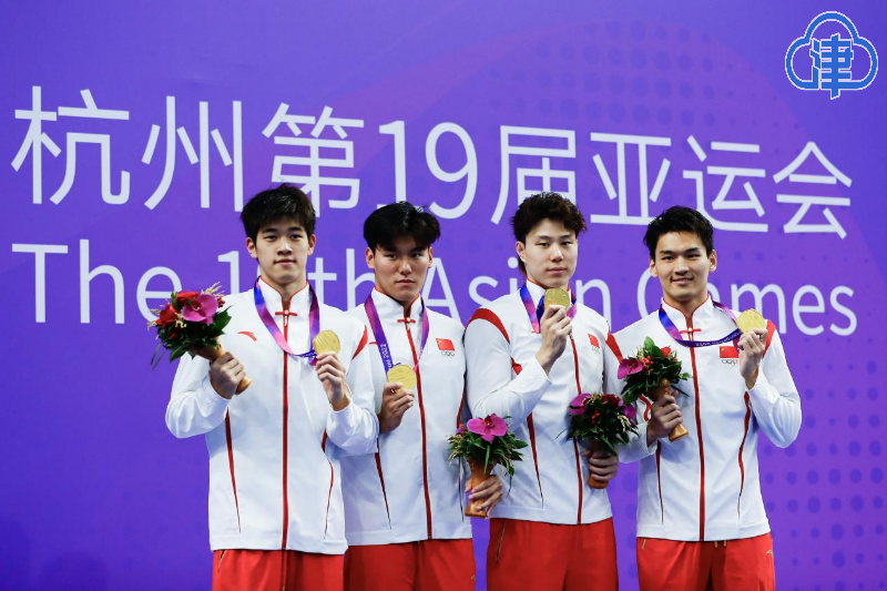 杭州亚运会游泳4×100米自由泳接力比赛中,中国队以3分10秒88打破亚洲纪录,获得金牌。在上午出战预赛的天津选手、我校竞技运动学院2021级游泳专项学生王长浩和天津选手、我校毕业生杨金潼,作为团队成员,为中国游泳接力队做出了贡献,也有金牌入账。