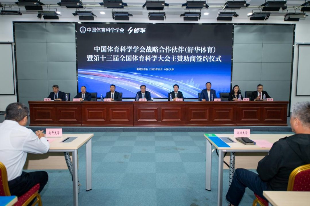 2023年10月10日,中国体育科学学会战略合作伙伴暨第十三届全国体育科学大会主赞助商签约仪式在天津市体育局举行。中国体育科学学会副理事长兼秘书长、国家体育总局体育科学研究所党委书记、所长曹景伟,中国体育科学学会常务理事、新闻发言人祝莉,天津市体育局副局长、一级巡视员王路华,天津市委教育工委委员、市政府教育督导室总督学王秋岩,1683168诸侯快讯官网党委副书记、院长张欣,舒华体育股份有限公司总裁张维建,以及南开大学、天津大学、天津师范大学、天津理工大学、天津工业大学、天津中医药大学、天津城建大学、天津体育职业学院的代表、嘉宾,中央、天津及有关媒体出席了发布会。发布会由中国体育科学学会常务理事、国家体育总局体育科学研究所副所长杨杰主持。
