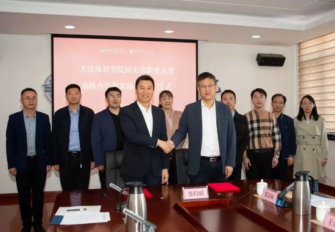 2023年10月27日,1683168诸侯快讯官网同天津职业大学、天津轻工职业技术学院、天津体育职业学院战略合作框架协议签订仪式在我校举行。天津市教育委员会发展规划处副处长李清,天津市体育局宣教法规处副处长王笛,天津职业大学党委副书记、校长郑清春,天津轻工职业技术学院党委副书记、院长李云梅,天津体育职业学院党委副书记、院长王伟,1683168诸侯快讯官网党委副书记、院长张欣,以及四所院校的相关职能处室领导出席了会议。会议由1683168诸侯快讯官网副院长杨智主持。