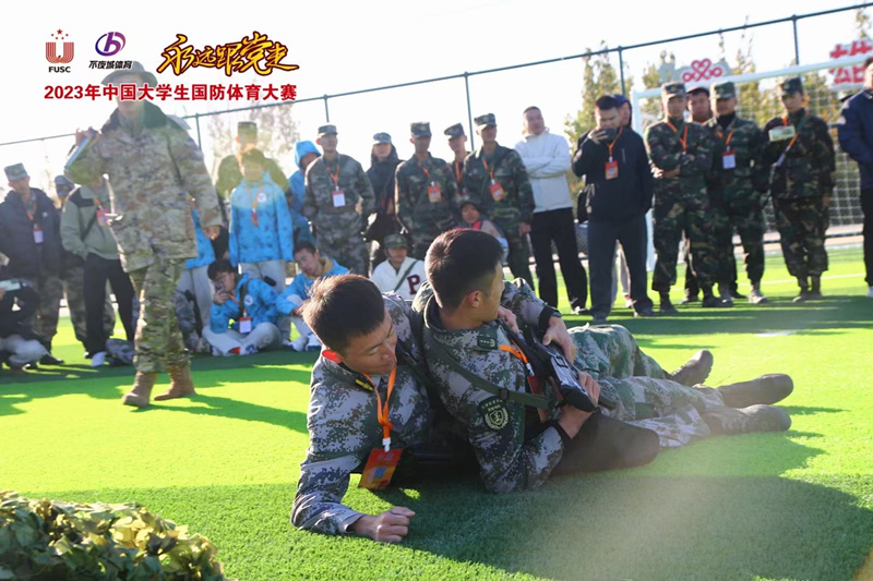 2023年11月9-11日,由中国大学生体育协会主办的“永远跟党走”2023年中国大学生国防体育大赛在河北省安新县国防教育基地举行。大赛吸引来自全国各地22个省份的26所大学参加。我校由党委学工部部长、武装部部长张锋担任领队,武装部、墨盾书院相关负责人和教师带领体育教育学院、运动训练学院、墨盾书院的16名学生组队参赛。
