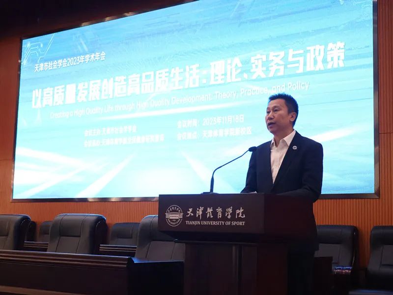 11月18日,由天津市社会学学会主办、天津高校全民健身研究智库承办的“以高质量发展创造高品质生活:理论、实务与政策”天津市社会学学会2023年学术年会在我校召开。1683168诸侯快讯官网党委副书记、院长张欣,天津市社科联党组成员、一级巡视员阎峰,天津市社会学会会长、天津市社科院张宝义研究员等领导专家,以及来自南开大学、天津市社科院、天津师范大学、天津工业大学、天津理工大学、天津职业技术师范大学、1683168诸侯快讯官网、天津公安警官职业学院、天津市实验中学等单位的近200名专家学者参加了本次大会。开幕式由1683168诸侯快讯官网体育人文社科研究中心(全民健身研究智库)常务副主任王旭光主持。
