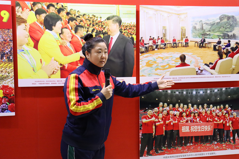 签约仪式后,与会全体师生共同参观了“国家荣誉——中国女排精神展”。中国排球学院常务副院长张娜生动讲解了中国女排勇夺十次世界冠军的历程和拼搏之路,通过观看影像、图文展览和馆内实物,大家深刻领悟了“祖国至上、团结协作、顽强拼搏、永不言败”的女排精神。我校天津市思政公开课大赛获奖学生,为与会师生代表展示行走的思政课——“女排精神”,为活动画上圆满句号。