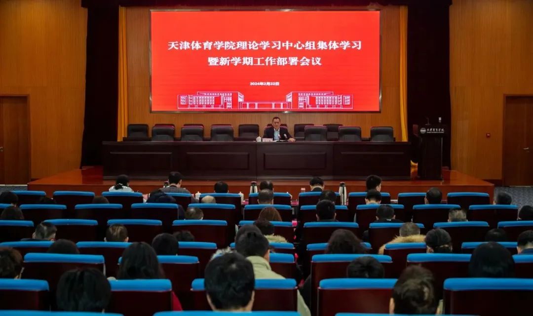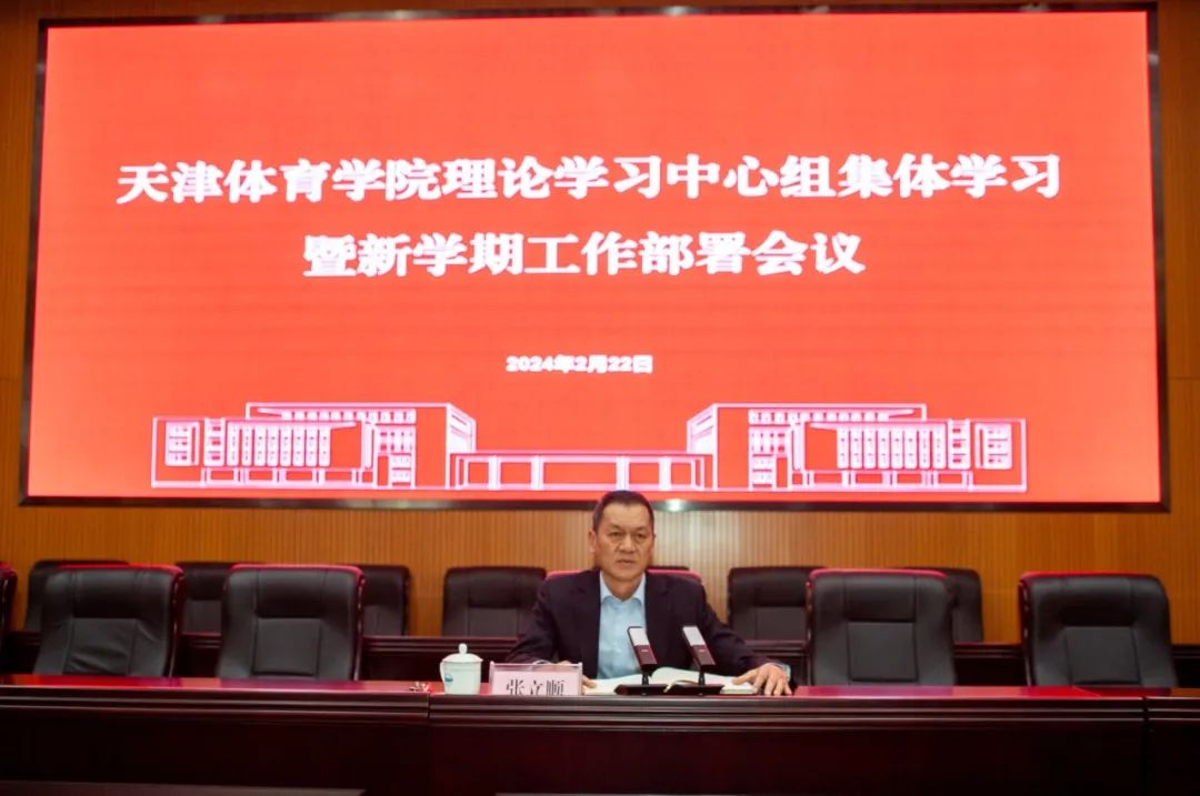张立顺首先传达了习近平总书记视察天津并听取市委和市政府工作汇报时的重要讲话精神和市委学习贯彻习近平总书记视察天津重要讲话精神专题研讨会暨市委理论学习中心组读书班精神。他指出,习近平总书记始终关心天津发展、心系天津人民,在喜迎新中国成立75周年的重要节点,在京津冀协同发展重大国家战略实施10周年的重要时刻,在龙年新春佳节来临之际,亲临天津视察指导,看望慰问基层干部群众,在新时代新征程天津发展进程中具有重要里程碑意义。他强调,要深刻领会习近平总书记重要讲话精神的精髓要义,牢牢把握新时代新征程习近平总书记对天津工作的部署要求,深刻理解习近平总书记提出的“四个善作善成”的重大意义。一要在发展新质生产力上善作善成,坚持创新驱动发展,加大科技成果转化力度,助力体育产业高质量发展。二要在进一步全面深化改革开放上善作善成,把牢学校改革发展航向,用好人工智能等前沿科技,加快推进教育教学、科技创新、竞技体育等领域的改革发展。三要在推动文化传承发展上善作善成,立足“两个结合”,把传承中国女排精神和民族传统体育作为重要抓手,深入挖掘中华体育文化内涵,大力弘扬中华优秀传统体育文化。四要在提升城市治理现代化水平上善作善成,进一步深化“京津同城”,以推进京津冀协同发展为战略牵引,积极推动京津冀地区院校交流合作,助力京津冀成为中国式现代化建设先行区、示范区。张立顺要求,学校各级领导干部要发挥示范带头作用,勇担使命、开拓进取,从全局谋划一域、以一域服务全局,全力以赴抓好各项工作落地落实,切实把习近平总书记重要讲话精神转化为服务中国式现代化天津建设的具体实践。