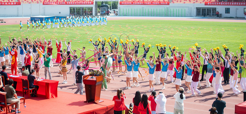 文体展演中,我校大学生表演了歌舞《一起出发吧》,千名大学生表演了大型团体操舞《中国看我》。