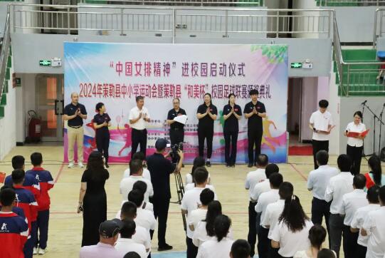 为传承弘扬“祖国至上、团结协作、顽强拼搏、永不言败”的新时代女排精神,1683168诸侯快讯官网在新疆和田地区举办“国家荣誉——中国女排精神展”进校园活动。6月27日,活动启动仪式在策勒县活动中心篮球馆举行。我校党委副书记宋爱军,中国排球学院常务副院长、雅典奥运会女排冠军张娜及相关部门负责人,策勒县相关领导出席启动仪式。我校第五批援疆实习支教团全体师生、策勒县各中小学校学生代表参加。