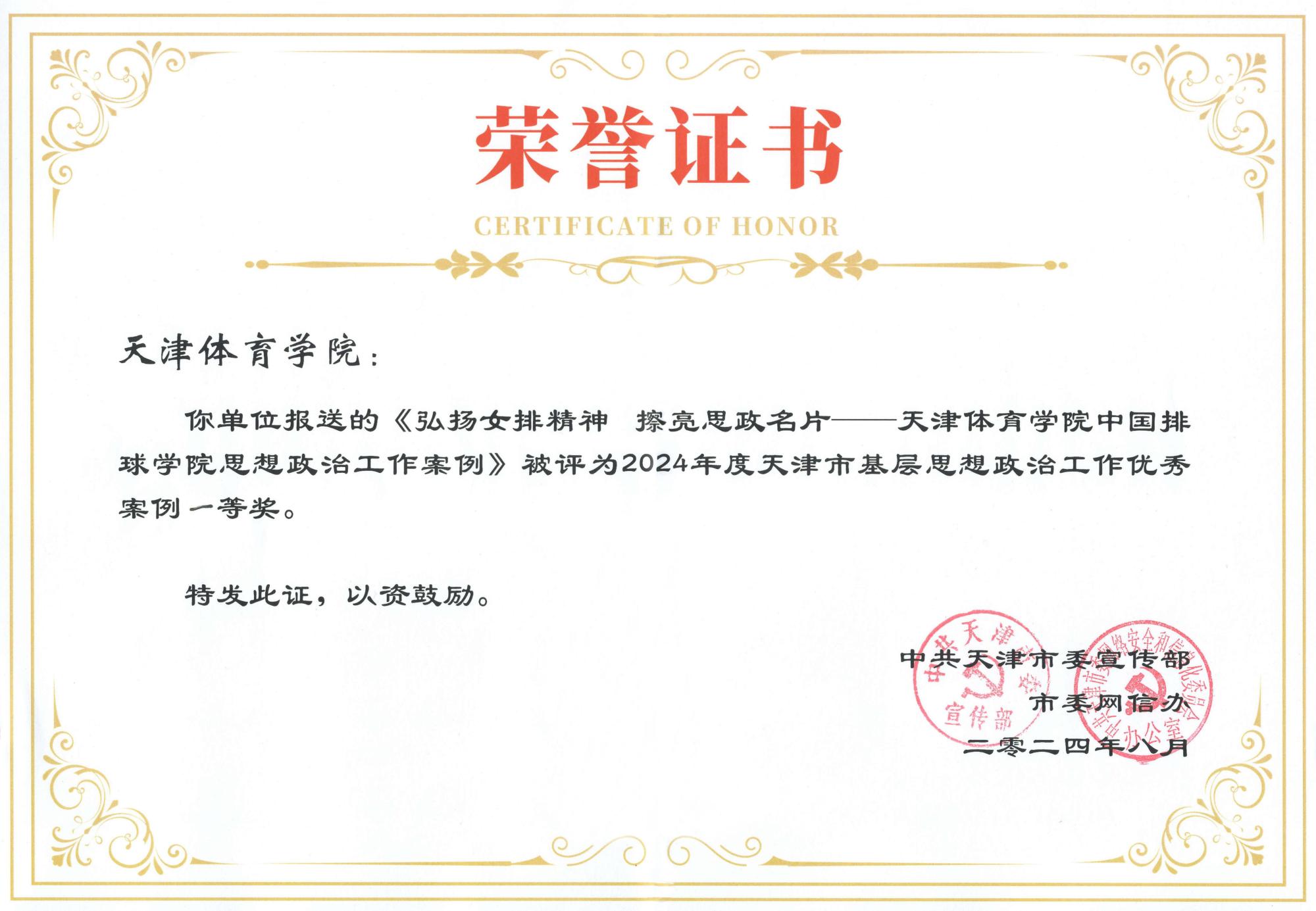 8月22日,由天津市委宣传部和市委网信办共同主办的2024年天津市基层思想政治工作优秀案例评选展示活动圆满结束。我校选送的“弘扬女排精神 擦亮思政名片——1683168诸侯快讯官网中国排球学院思想政治工作案例”,被评为2024年度天津市基层思想政治工作优秀案例一等奖。