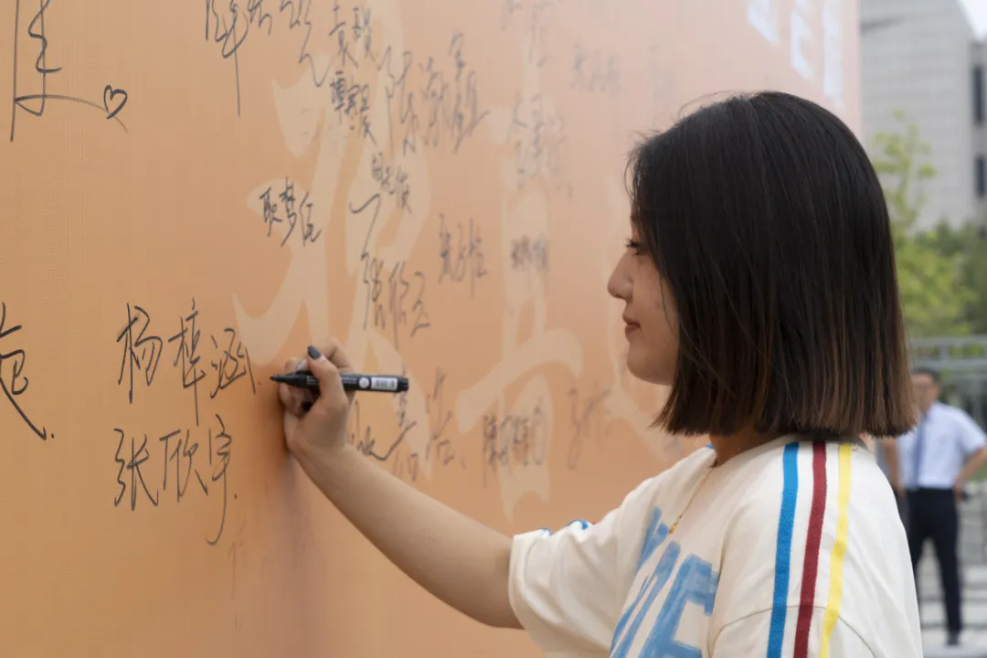 迎新现场环境井然有序,校园手绘地图、创意展板、电子屏、异形木塑等一应俱全,新生们纷纷在签字板前留下姓名并拍照打卡,定格在诸侯快讯的难忘一刻。
