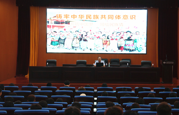 为深入学习贯彻习近平总书记关于加强和改进民族工作的重要思想,贯彻落实中央民族工作会议精神,在“民族团结进步宣传月活动”开展之际,我校举办“同心向未来”活动沙龙第五期暨“铸牢中华民族共同体意识——共筑中国梦 同绘民族情”主题宣讲活动。教育与心理学院杨俊生教授担任主讲教师,来自各学院的学生代表170余人参加活动。活动由党委统战部副部长赵汝梅主持。