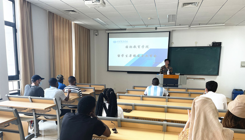 在暑假来临之际,为进一步强化留学生安全意识,巩固疫情防控阶段性成果,确保留学生度过一个安全祥和的假期,6月18日,国际教育学院对全体在校留学生开展了暑假安全专题教育,直属党支部书记仇丽琴、辅导员马志儒参加。