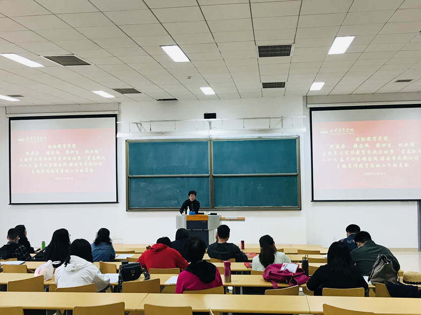 近日,国际教育学院召开全体教师会议,对“迎盛会、铸忠诚、强担当、创业绩”主题学习宣传教育实践活动、“青春献礼二十大 奋斗担当铸忠诚 强国有我新征程”主题宣传教育活动进行动员部署,并对相关工作进行布置。会议由副院长刘海娜主持,体育文化学院党委书记田向国受邀参会。