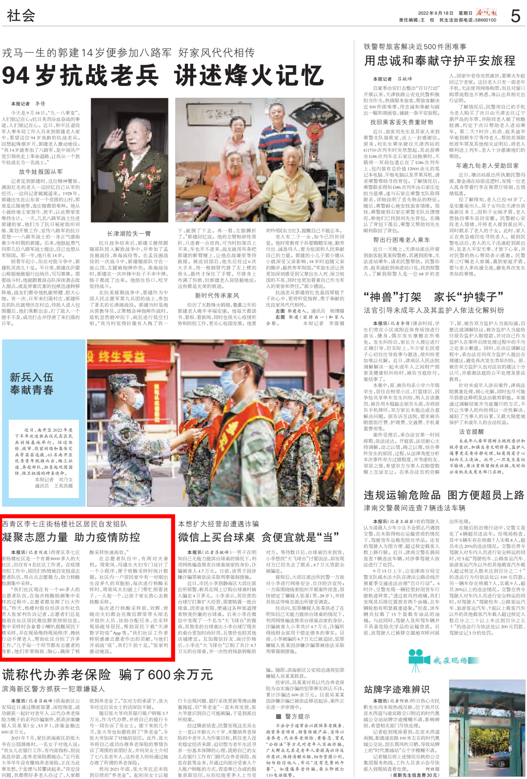 9月18日,《今晚报》报道我校教师积极参加志愿服务,助力疫情防控,现全文转载。