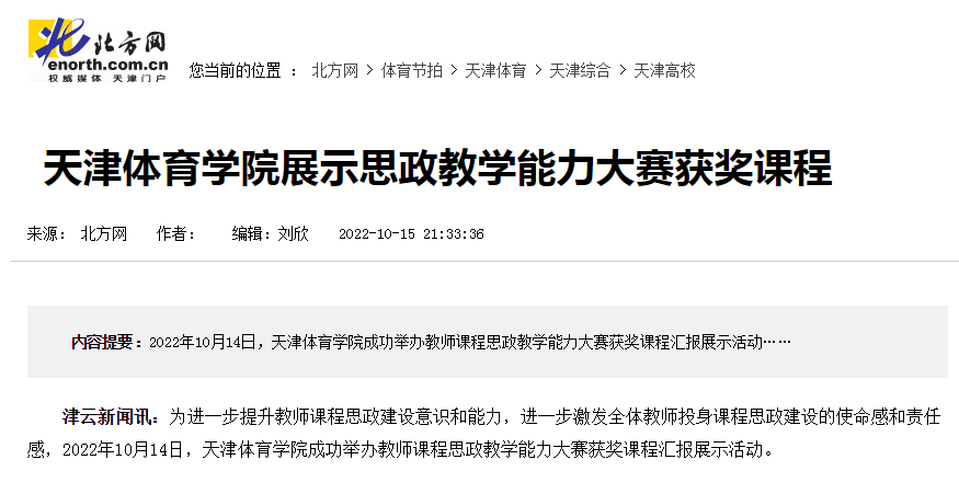 媒体看诸侯快讯 | 北方网、津云报道我校举办教师课程思政教学能力大赛获奖课程汇报展示活动