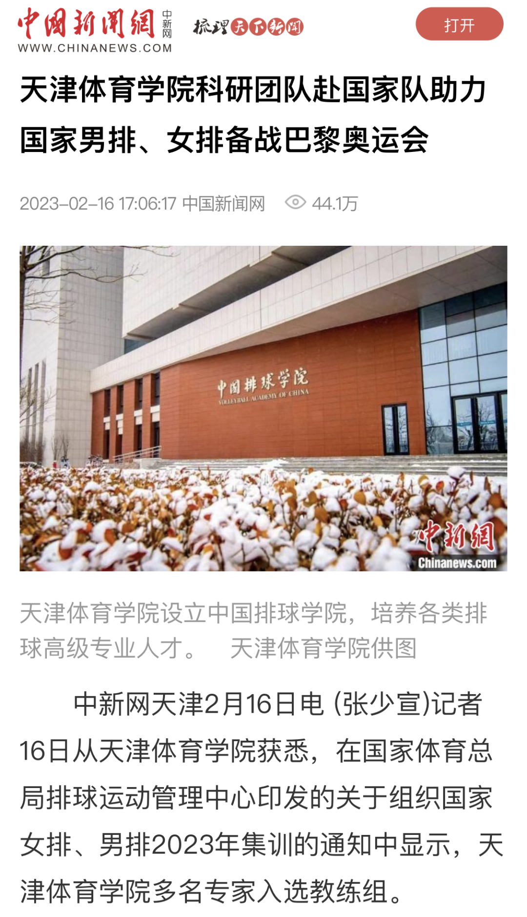 近日,人民日报客户端、中国新闻网、《天津日报》、津云、《天津教育报》等中央和我市多家媒体对我校科研团队全面助力国家男排、女排备战巴黎奥运会进行了报道。