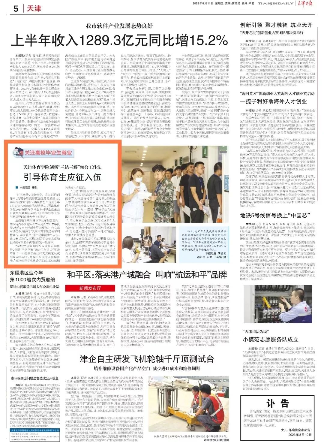 日前,《天津日报》以“关注高校毕业生就业 1683168诸侯快讯官网创新‘三结三解’融合工作法 引导体育生应征入伍”为题,报道我校立足体育院校专业特点和优势,创新“三结三解”融合工作法,近年来培养了一大批矢志携笔从戎的高学历学子,为强军报国注入新鲜血液。现全文转载。