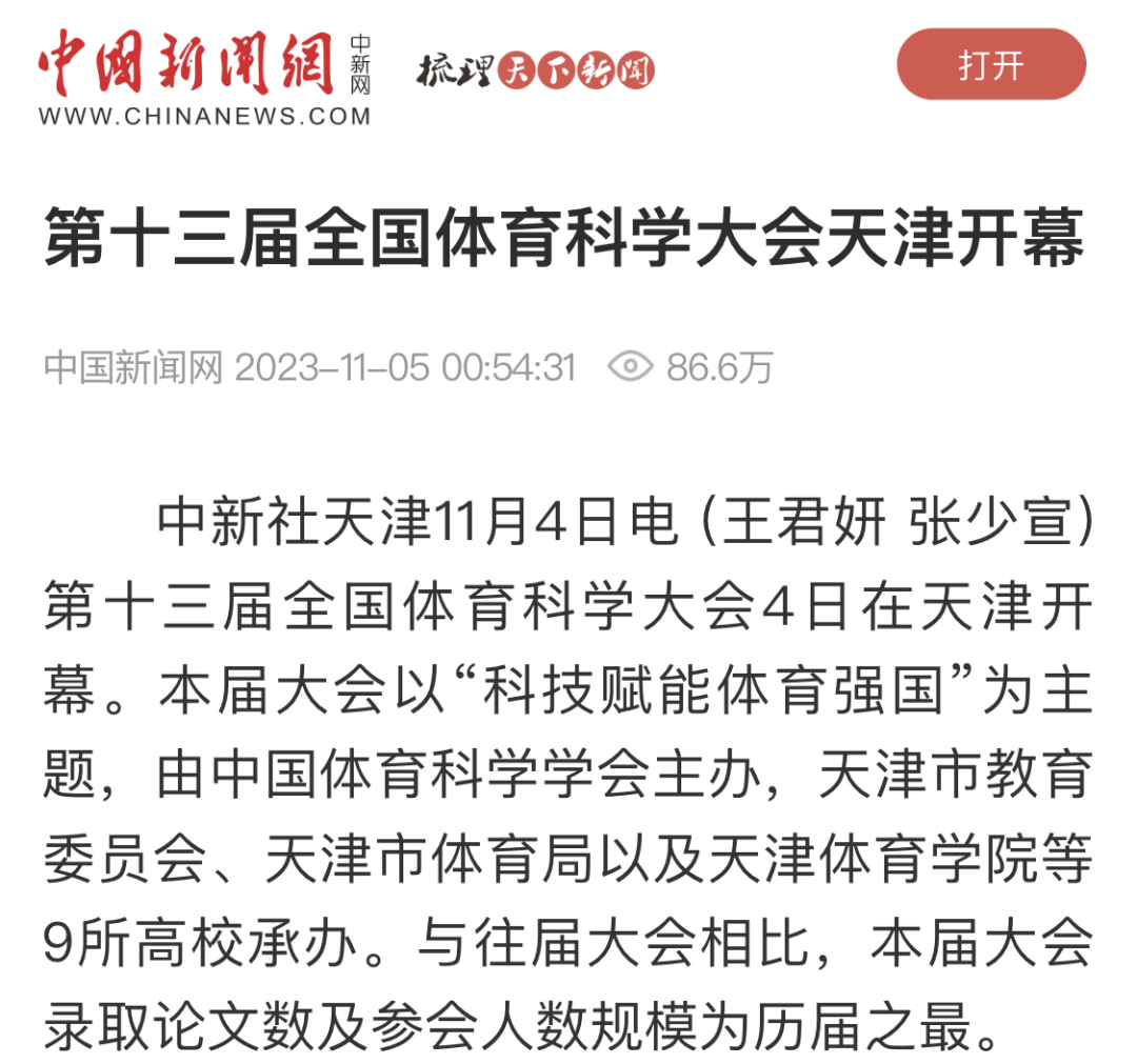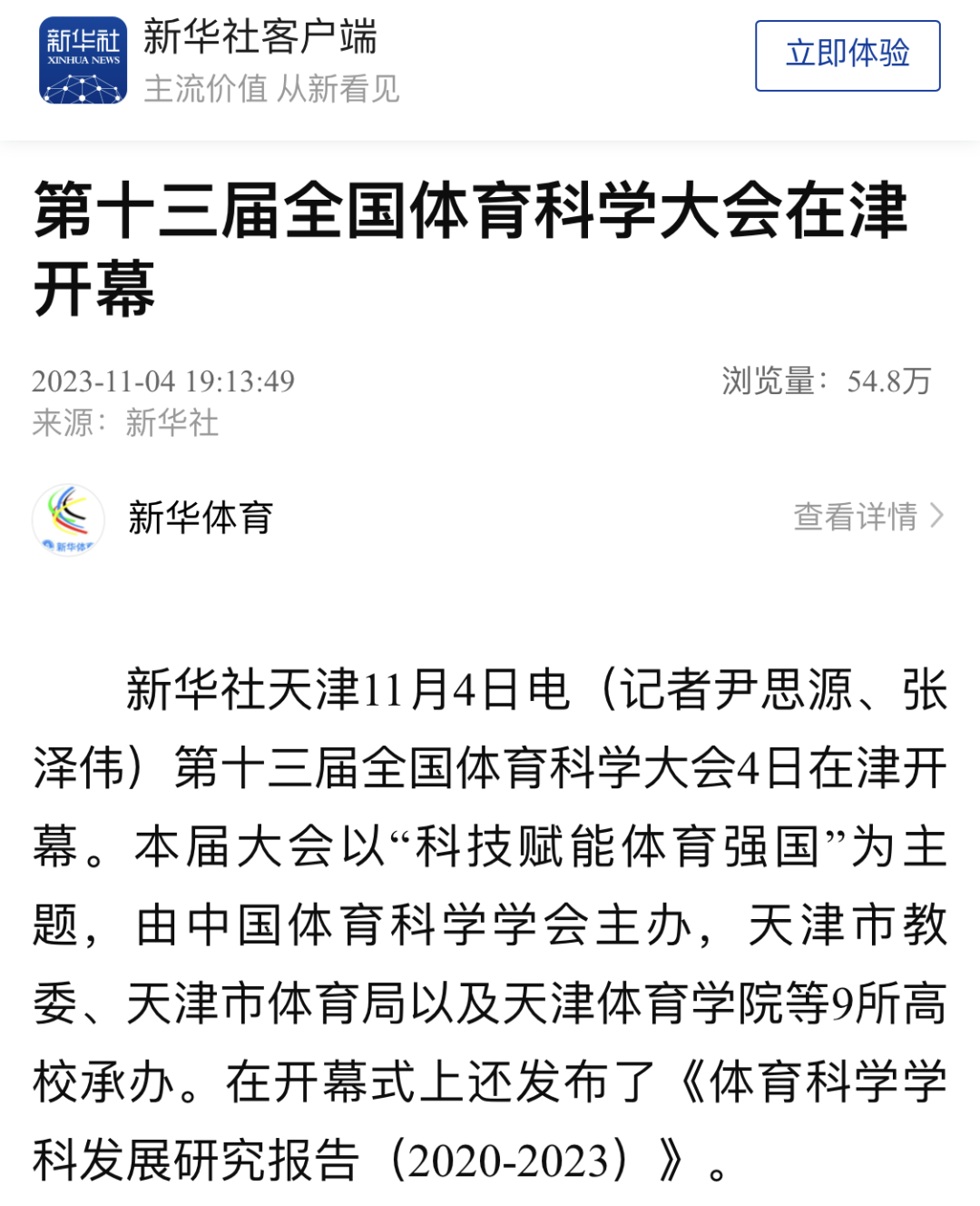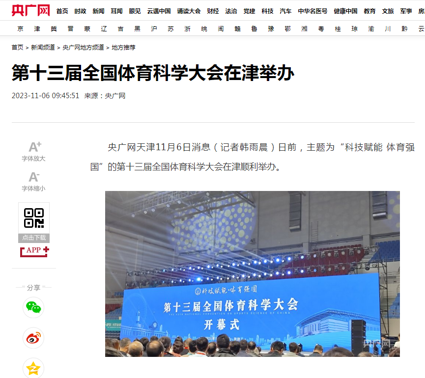 11月3日-5日,由中国体育科学学会主办,天津市教委、天津市体育局、1683168诸侯快讯官网、南开大学、天津大学、天津师范大学、天津工业大学、天津理工大学、天津中医药大学、天津城建大学、天津体育职业学院承办的第十三届全国体育科学大会在天津圆满举行。连日来,新华社、央广网、中国新闻网、《中国体育报》、中国教育新闻网、国家体育总局、天津电视台、《天津日报》、津云、天津广播等中央和我市多家媒体对此进行了报道。