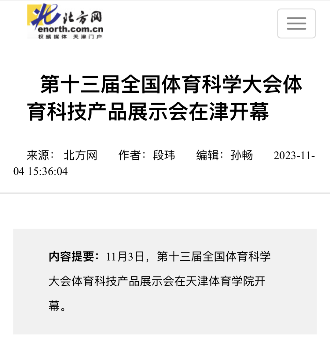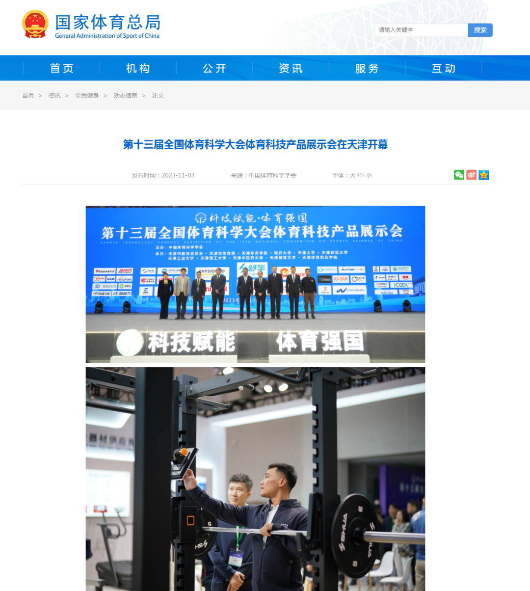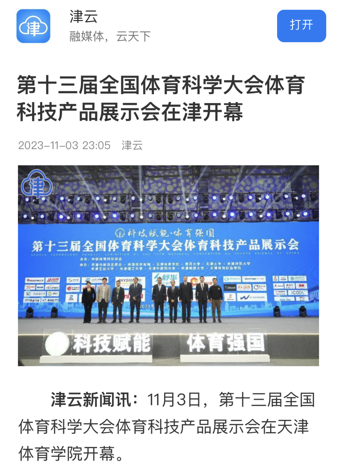 2023年11月3日下午,第十三届全国体育科学大会体育科技产品展示会在1683168诸侯快讯官网隆重开幕。新华社、央广网、国家体育总局官网、津云、北方网等中央和我市多家媒体对此进行了报道。
