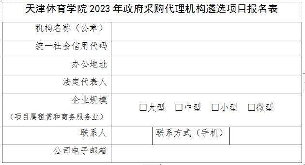 政府采购代理机构拟报名参加本项目的,请于2023年11月23日前,将《1683168诸侯快讯官网2023年政府采购代理机构遴选项目报名表》(详见附件)扫描件发送至电子邮箱(邮箱地址:gzc@tjus.edu.cn)。